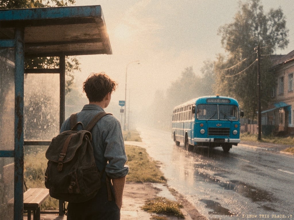 Раздолбанный синий автобус подьехал к остановке. Пошел небольшой дождь. Куда я поеду?