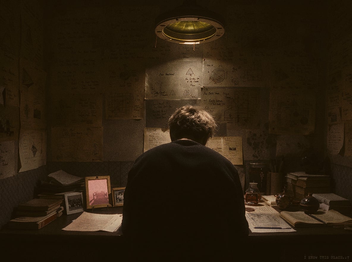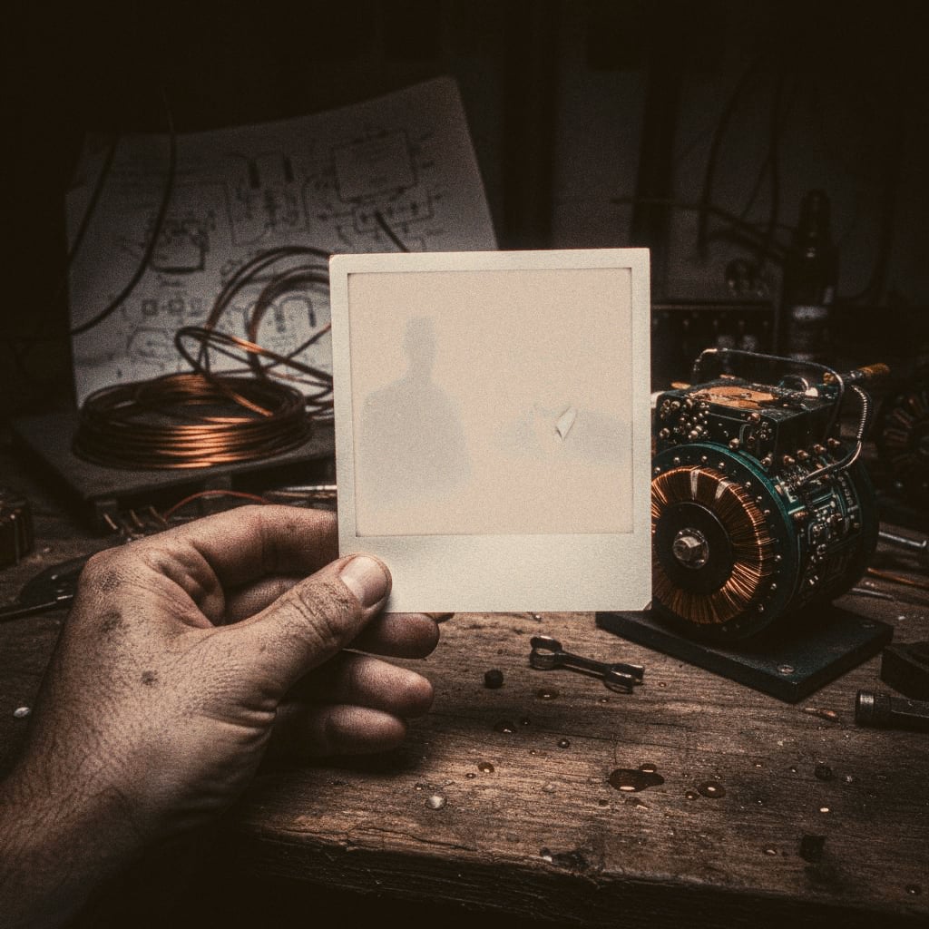 Обычные же люминисцентные лампы замерцали и я увидел десятки пустых снимков, развешанных на бельевых веревках и прилепленных к стенам изолентой. Я подошел ближе, сердце заколотилось. Большинство снимков были почти пусты — лишь размытые, угадываемые очертания: силуэт человека, контур знакомого дома... Профессора? Моего? Словно кто-то пытался сфотографировать призрака.